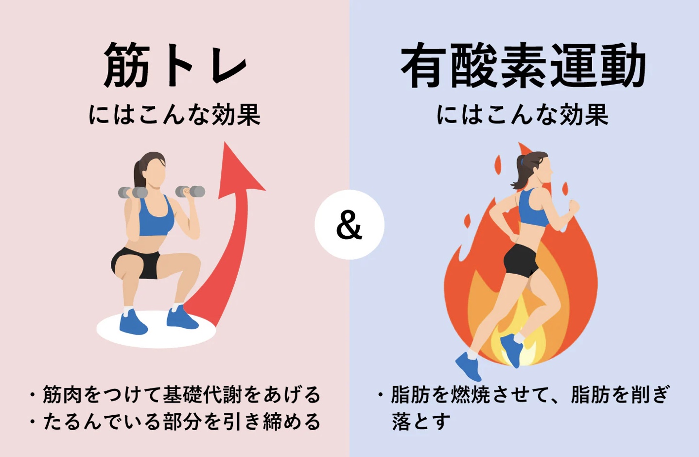全身の大きな筋肉(脚、胸、背中)を鍛えることで、代謝が上がり、痩せやすく太りにくい体になります。まずは自宅でできるスクワットやプッシュアップ(腕立て伏せ)から始めてみましょう。